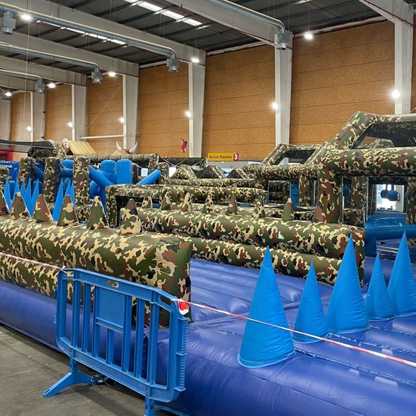 Sumérgete en una experiencia llena de adrenalina, risas y desafíos que pondrán a prueba tu destreza, valentía y espíritu competitivo. Con 1200 m² de pura diversión, Crazy Warriors te ofrece un recorrido emocionante con obstáculos inflables gigantes, toboganes vertiginosos y retos que te harán sentir como un auténtico guerrero.