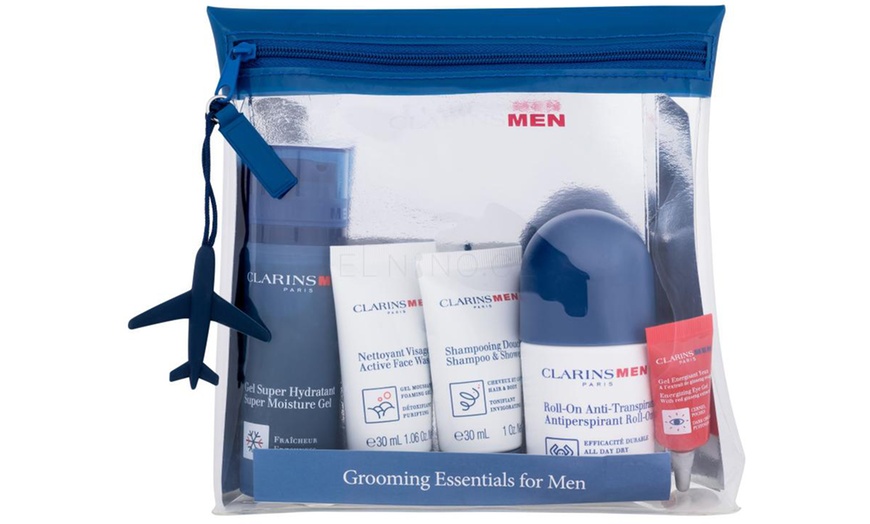 El lote con productos básicos para hombre incluye gel de afeitado, gel calmante, gel limpiador facial, desodorante y sérum energizante de ojos