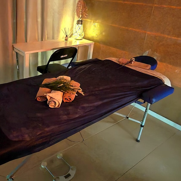 - El masaje finaliza con una sesión de aromaterapia. El cliente se tumba en la cama y el terapeuta le aplica un aceite esencial aromático en la cara y el pecho. El cliente puede relajarse y disfrutar de los efectos calmantes de la aromaterapia.