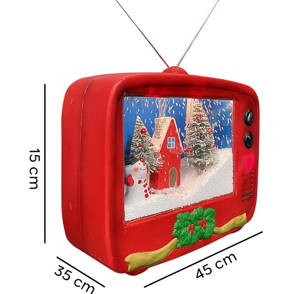 Este producto está diseñado para uso decorativo en interiores. No es un juguete y no debe ser utilizado por niños sin supervisión. Manténgalo fuera del alcance de los niños y las mascotas. Utilícelo exclusivamente sobre superficies estables y planas. Evite el contacto con agua o superficies húmedas. Nunca sumerja el producto en agua y no lo utilice en exteriores o en ambientes húmedos. No cubra el televisor con tejidos o materiales inflamables durante su funcionamiento. Compruebe que la tensión de alimentación coincide con la indicada (100-240 V, 50/60 Hz). Evite tirar del cable de alimentación o doblarlo en exceso. Apague y desconecte el televisor cuando no lo utilice o antes de moverlo. No intente abrir o modificar el producto, ni sustituir piezas eléctricas. Las reparaciones solo deben ser realizadas por personal cualificado. No utilice el producto si presenta daños visibles en el cable, el enchufe o la estructura. Manténgalo alejado de fuentes de calor directas, como estufas, chimeneas o radiadores. El producto cumple con la protección IP20: apto solo para uso en interiores, no resistente al agua. Siguiendo estas instrucciones, el televisor decorativo navideño garantizará seguridad y una larga duración, permitiéndole disfrutar de las luces, el movimiento y la música con total tranquilidad durante las fiestas.