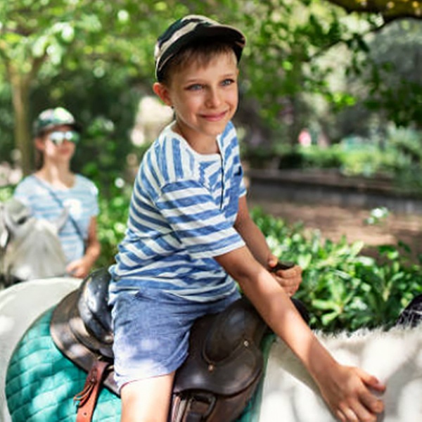 Esta divertida actividad está destinada a niños de entre 4 y 7 años, con el objetivo de que disfruten de la equitación de manera segura, didáctica y divertida. Las clases tienen una duración de 30 minutos y son grupales y reducidas, lo que permite una atención más personalizada y una experiencia más enriquecedora para cada niño. Se incluye todo el material necesario para disfrutar de la actividad, como los ponis, cascos y asistencia de monitores cualificados.