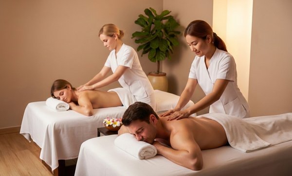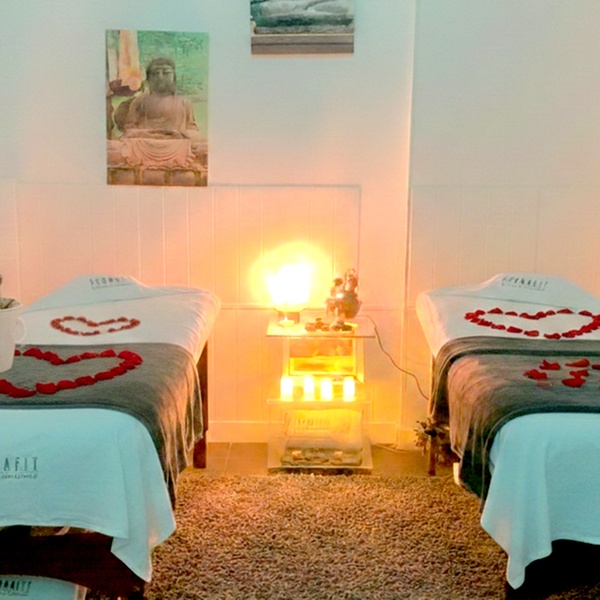 Se realiza un masaje para liberar tensiones, equilibrar emociones y renovar la energía en pareja, en un ambiente con decoración romántica, aceites esenciales aromáticos y música relajante. La experiencia incluye una copa de cava, una infusión herbal o una bebida similar.