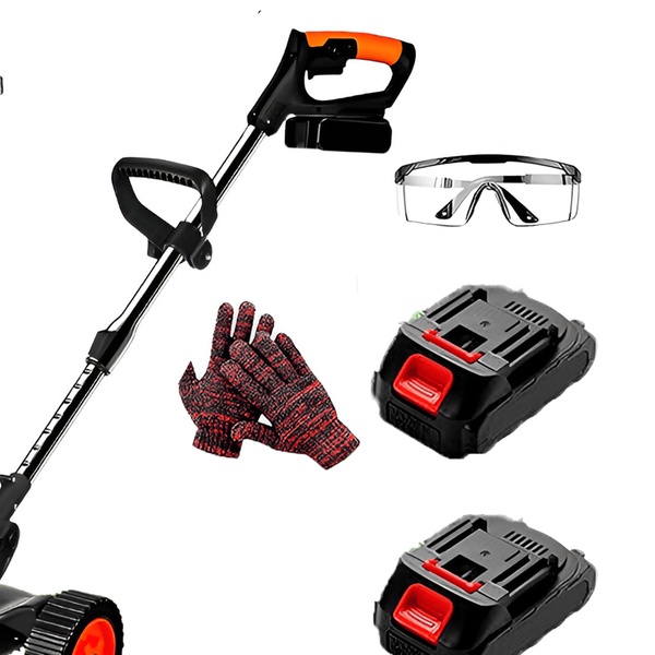 Desbrozadora eléctrica con ruedas y dos baterías recargables de 48V, cuchillas versátiles y mango ajustable