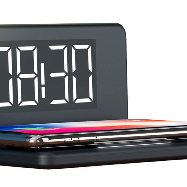 - Reloj despertador con carga inalámbrica Fast Charge y luz de noche