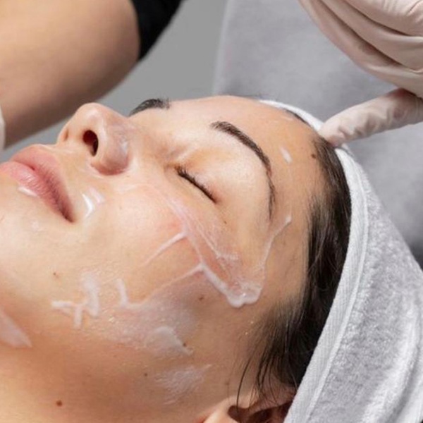3. Peeling químico suave. Se aplica una mezcla no irritante de ácidos glicólico y salicílico para ablandar las impurezas alojadas en los poros sin causar la descamación de los peelings tradicionales