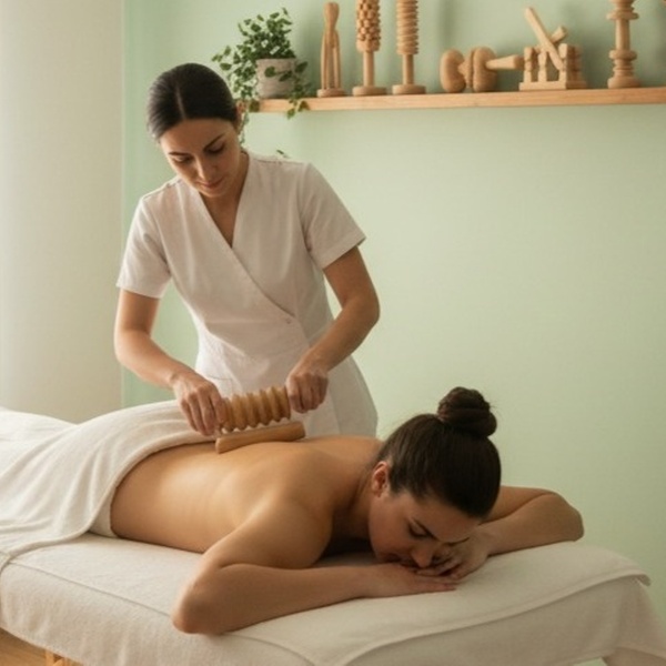 Divas Skin Care ofrece bonos de sesiones de maderoterapia, un tratamiento natural que utiliza instrumentos de madera especialmente diseñados para moldear, drenar y tonificar el cuerpo y el rostro. Ayuda a estimular la circulación, activar el sistema linfático y reducir la retención de líquidos, mejorando la apariencia de la piel y favoreciendo la eliminación de toxinas. Podrás elegir tratar una de las siguientes zonas: glúteos, muslos, abdomen o brazos.