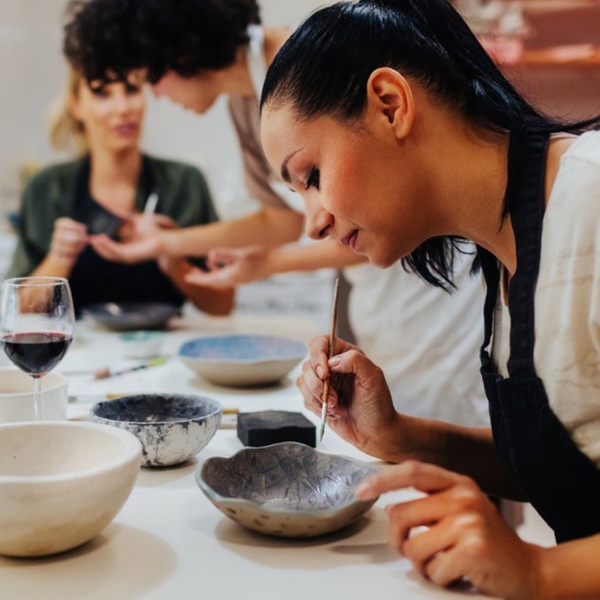 Participa en un taller artístico en el que podrás crear una obra maestra de cerámica con una copita de vino en la mano, un auténtico planazo para vivir un sábado diferente