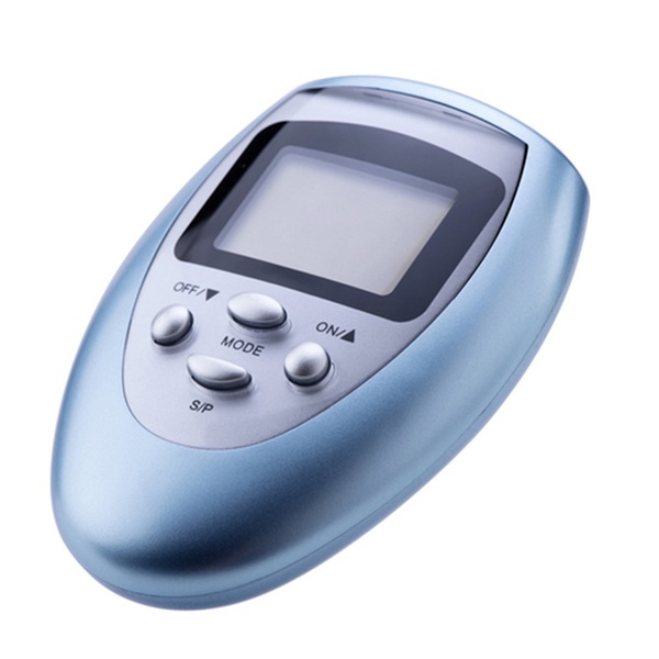 Electrostimulador compacto con electrodos y 8 modos de masaje que funciona con pilas AAA y pantalla LCD portátil