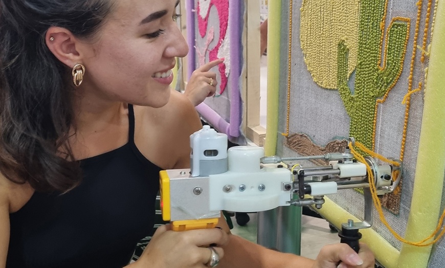 Explora el mundo del tufting creando una alfombra personalizada con orientación experta mientras disfrutas de bebidas ilimitadas
