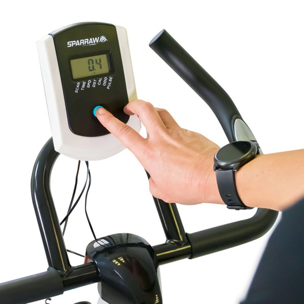 • LCD que mide tiempo, velocidad, distancia, calorías y frecuencia cardíaca.