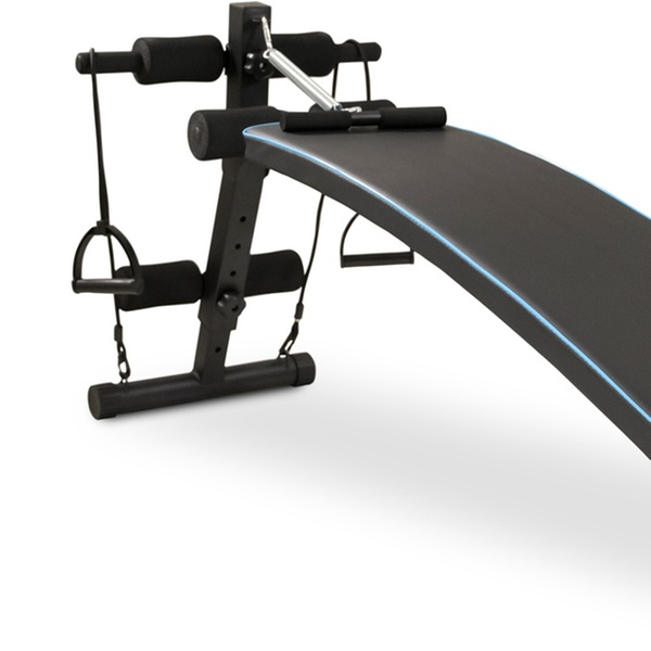 • Trabaja abdominales, brazos y tríceps con rampa ajustable, rodillos de espuma, resorte tipo remo y banda de resistencia con asas.