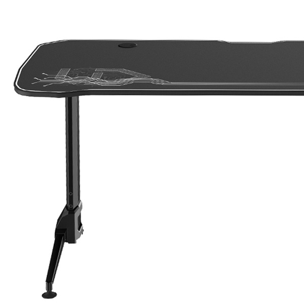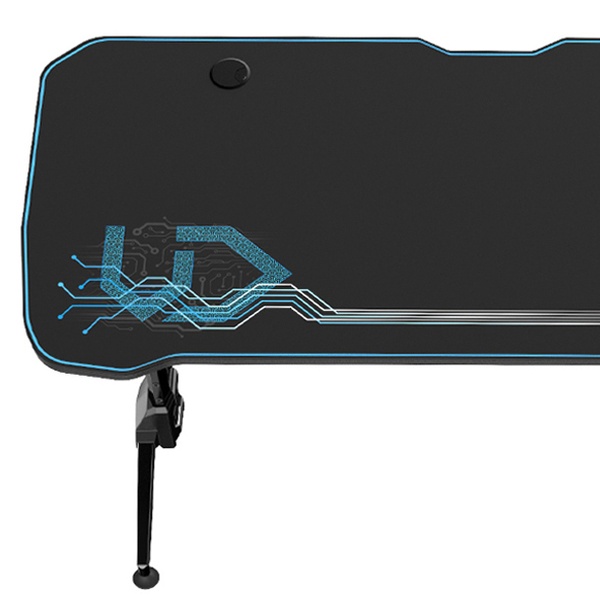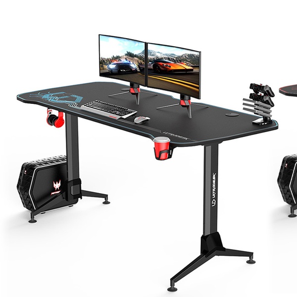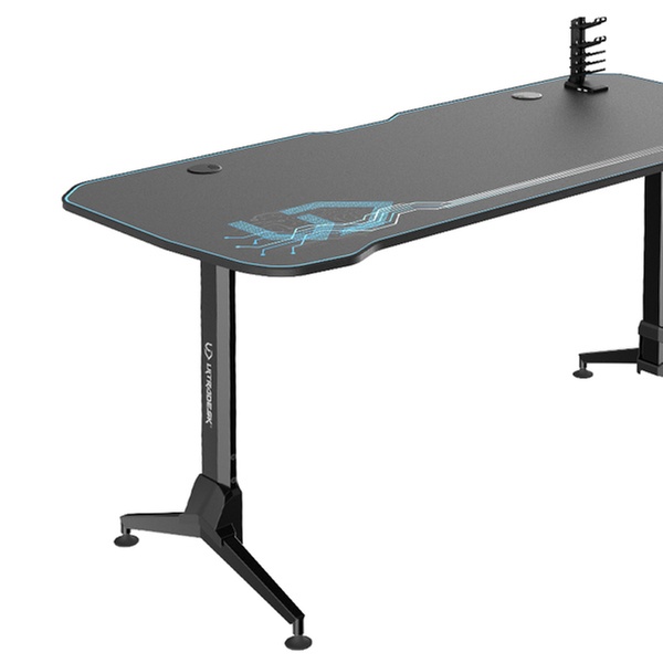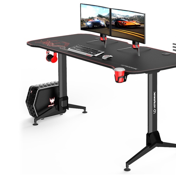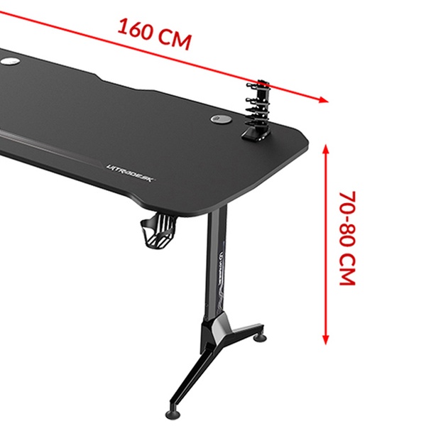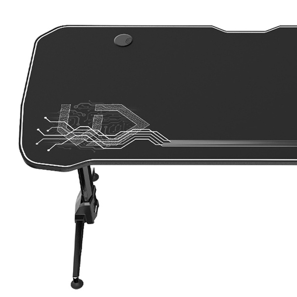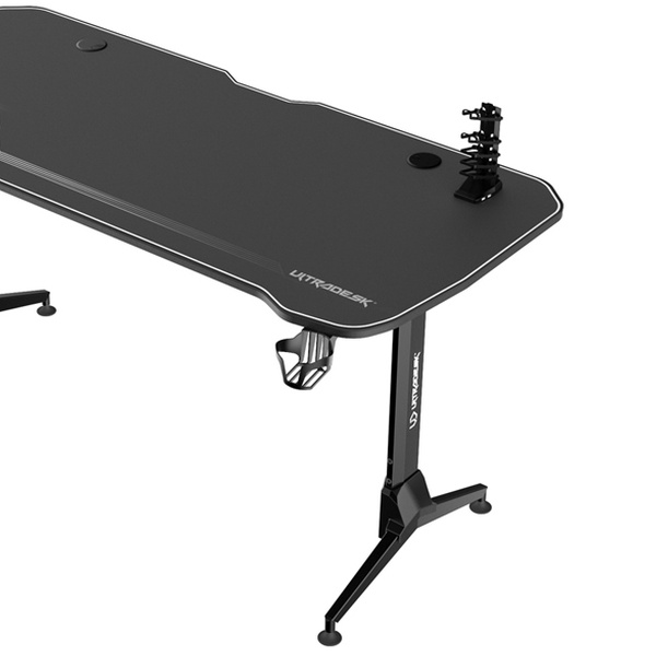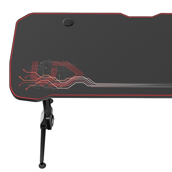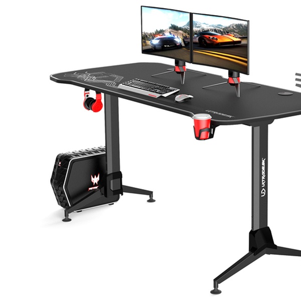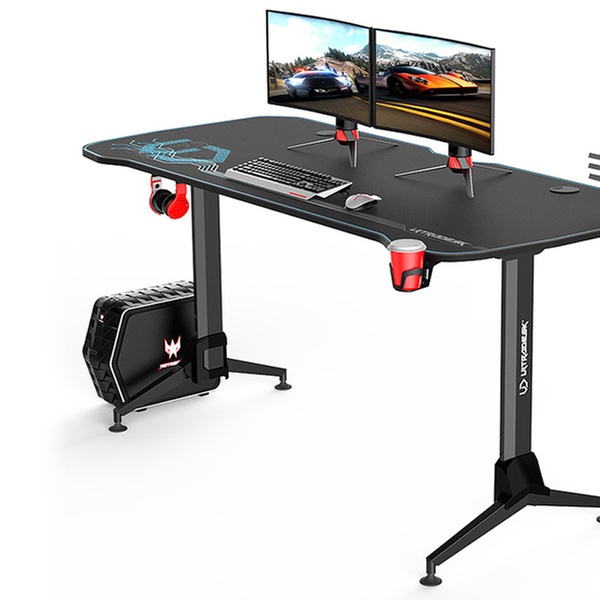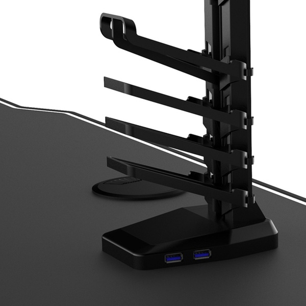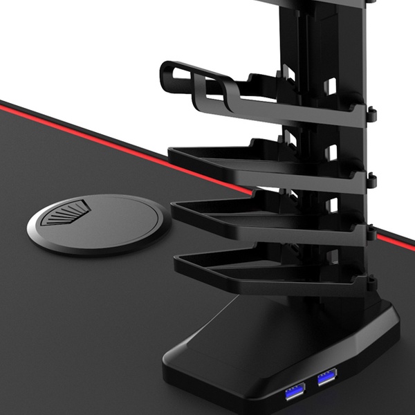 Escritorio adaptado a las necesidad de los jugadores, con soporte para auriculares, portavasos y soporte con puertos USB