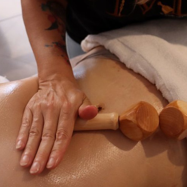 Masaje moldeador (uso de maderoterapia): para modelar la silueta, tonificar los tejidos, activar la circulación y mejorar la apariencia de la piel