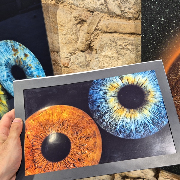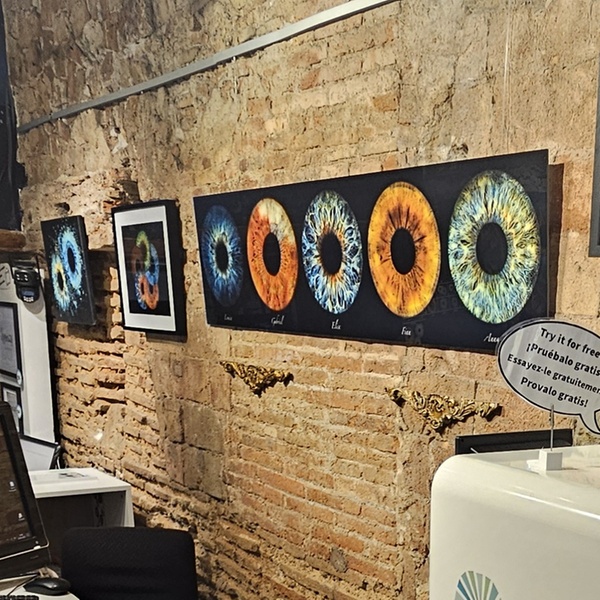 La fotografía utiliza cámara especializada y técnica precisa de iluminación para capturar cada detalle del iris. Producción 100 % local.