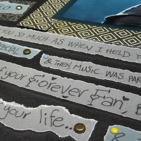 - Álbum de scrapbook de 10 páginas con hasta 15 fotos, encuadernado, diseñado a mano y con frases decorativas