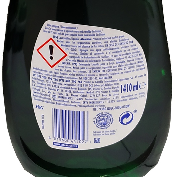 - Dosis: 1 tapón o 1 dosificación manual para un fregadero de 40-50 l