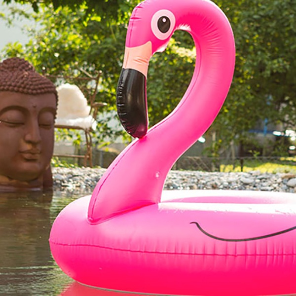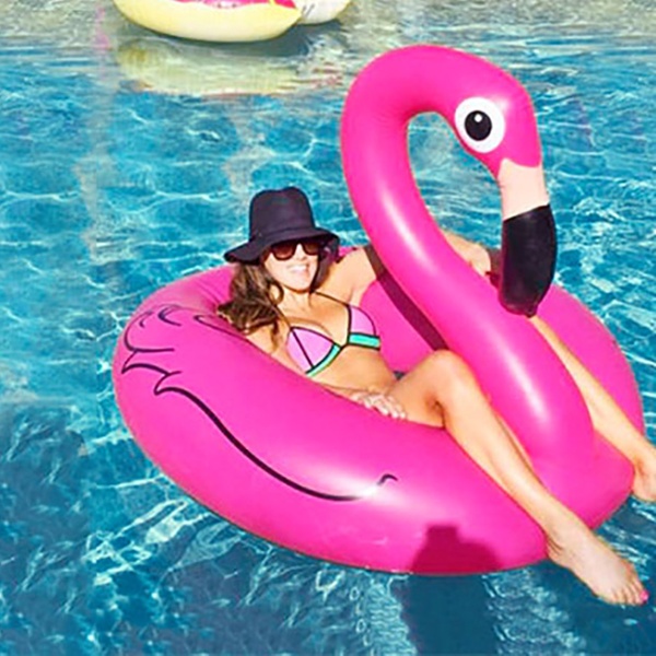Este colchón de aire tiene una forma distintiva de flamenco y es lo suficientemente grande para flotar cómodamente en el agua
