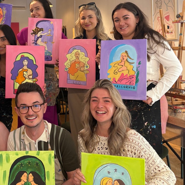 ¿Pintar con una copa en la mano suena como el plan más caótico o el más genial de la semana?