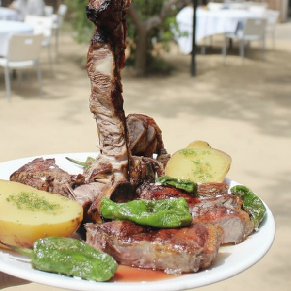 - Para 2 personas: menú de parrillada con degustación de entrantes, 1 postre y 1 botella de vino