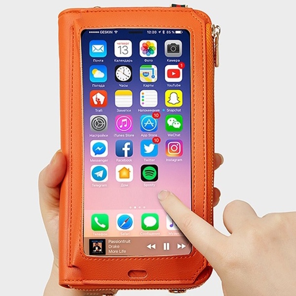 Con asa para colgar y cremallera, esta funda es ideal para llevar el móvil fuera de casa de forma práctica