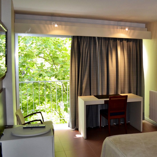 El hotel cuenta con 78 habitaciones dobles que disponen de excelentes vistas al río Tus y se comunican con las instalaciones termales con pasillos y ascensores. Las habitaciones cuentan con nevera, teléfono,TV de plasma, nevera, aire acondicionado y baño con secador.