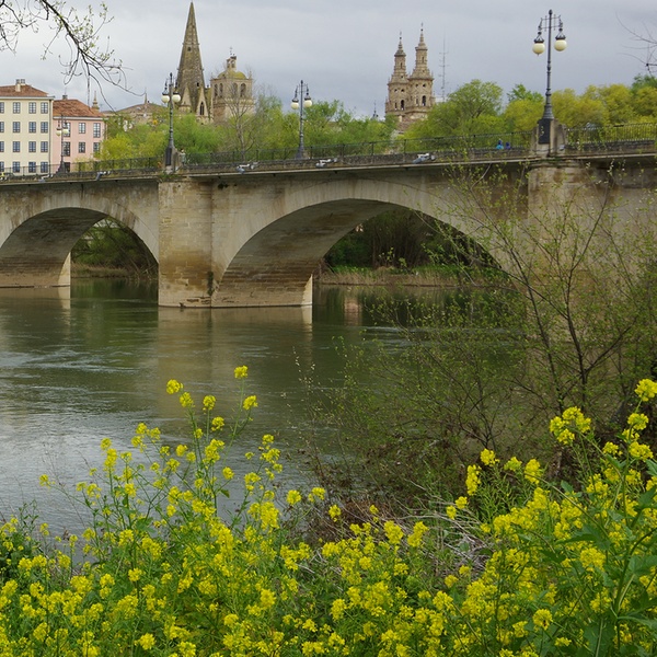El río Ebro atraviesa la ciudad y sobre él se encuentran dos puentes que sirven para comunicar Logroño con Navarra y Álava. El más antiguo de ellos es el Puente de Piedra, que permite que la ruta jacobea llegue hasta la ciudad. En su origen (siglo XI), estaba fortificado por cuatro arcos y tres torres. Otro puente, esta vez de hierro y construido en el siglo XIX, cruza también este cauce fluvial.