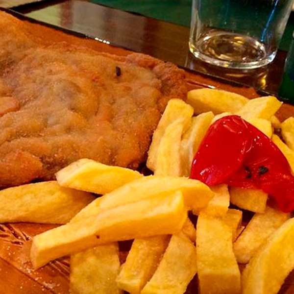 Cena típica asturiana. En el restaurante cercano La Guindal: primero + segundo + postre + bebida para 4 personas. El menú puede variar según la temporada, un ejemplo: Tabla de quesos asturianos + cachopo + arroz con leche + sidra