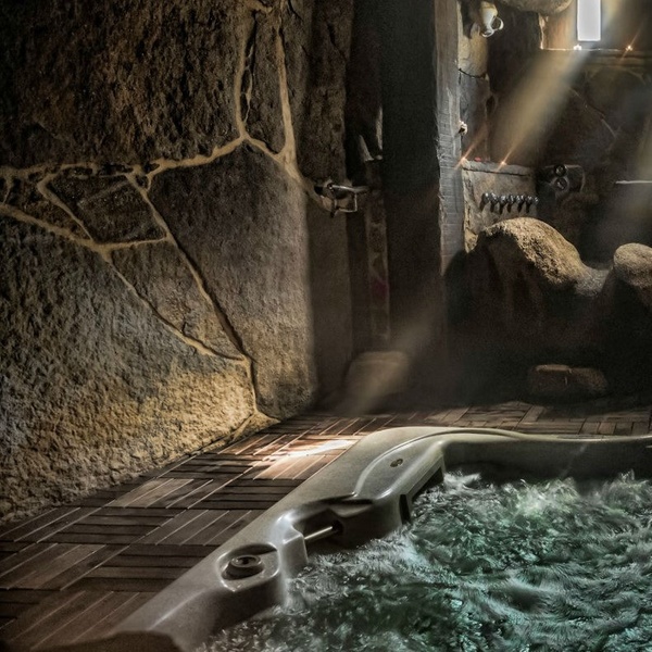 El spa, o mejor dicho la cueva termal, cuenta con jacuzzi, sauna y pediluvio.