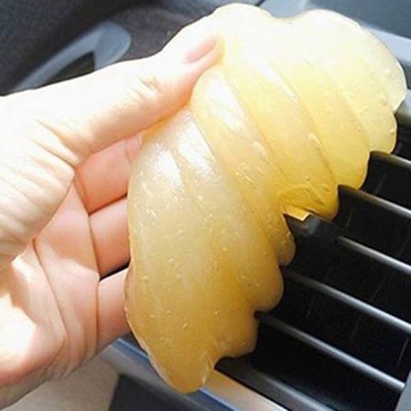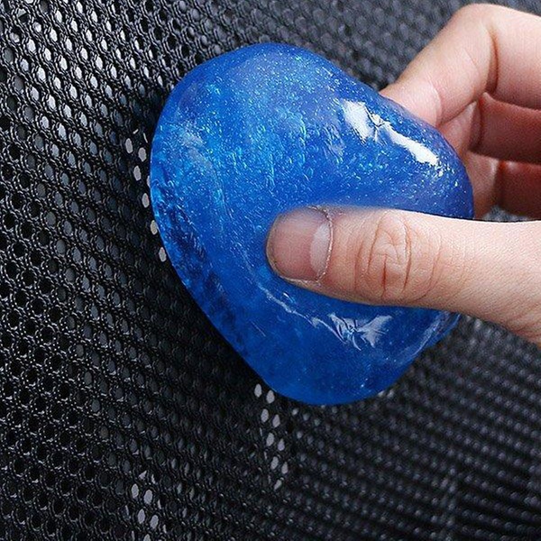 - Colocar el gel sobre la superficie a limpiar, presionarlo hacia abajo 2 o 3 veces y levantarlo: recoge el polvo, la suciedad, los pelos y más