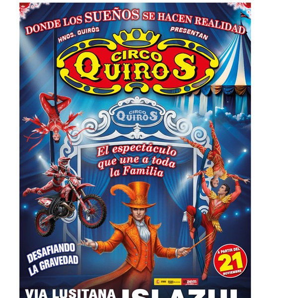 El Gran Circo Quirós llega a la ciudad con un espectáculo que combina el circo tradicional con innovadoras técnicas escénicas. Más de 30 artistas internacionales ofrecen un show completo con animales amaestrados como perros, gatos, burros, ponis y aves exóticas que volarán sobre el público. La adrenalina se vive con funambulistas, trapecistas y acróbatas en el péndulo de la muerte que realizan impresionantes acrobacias aéreas. Además, los payasos aportan humor y alegría, brindando momentos de risas para toda la familia.