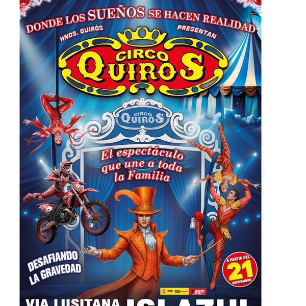 Adéntrate en el mágico universo del Circo Quirós, con una historia familiar que se remonta al siglo XIX, y que ofrece un espectáculo lleno de adrenalina. Tendrás la oportunidad de presenciar un show único que fusiona lo mejor del circo tradicional con las últimas novedades artísticas, con más de 30 años de trayectoria a sus espaldas. Te esperan artistas de talla mundial, listos para dejarte sin aliento con impresionantes acrobacias. Un plan para todas las edades, ideal para crear recuerdos inolvidables con los tuyos.