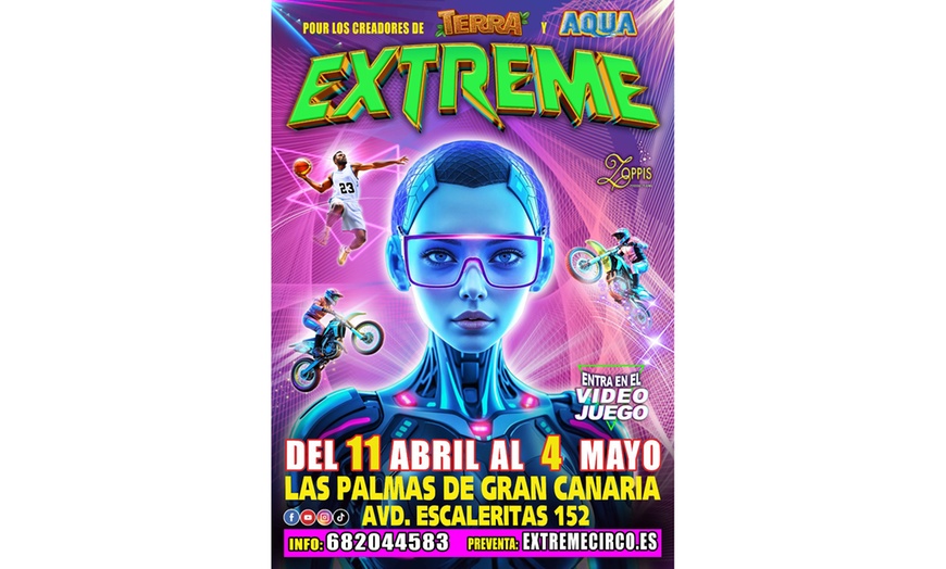 - 1 entrada al espectáculo "Extreme", el circo del futuro del 11 de abril al 4 de mayo en Canarias