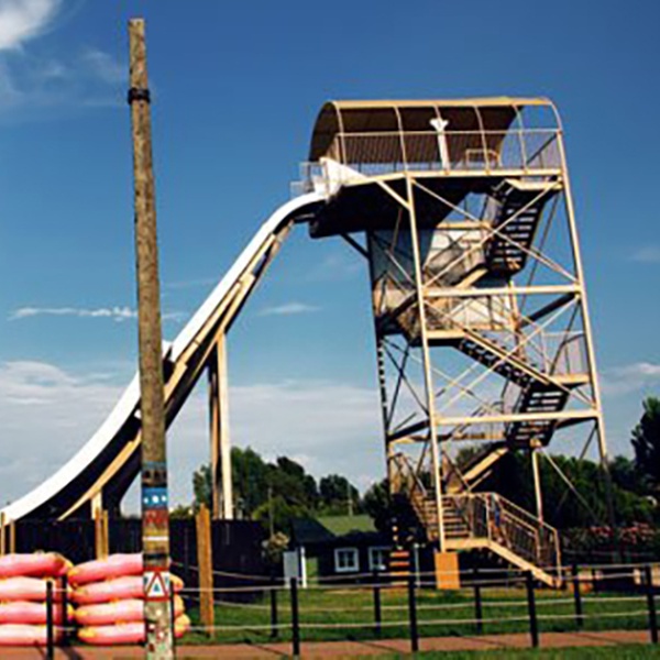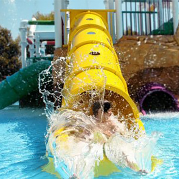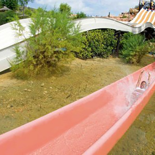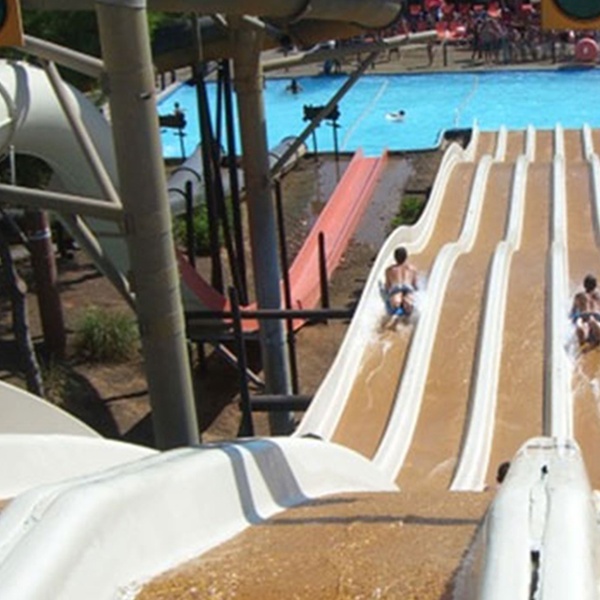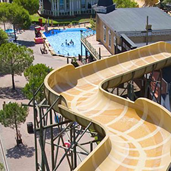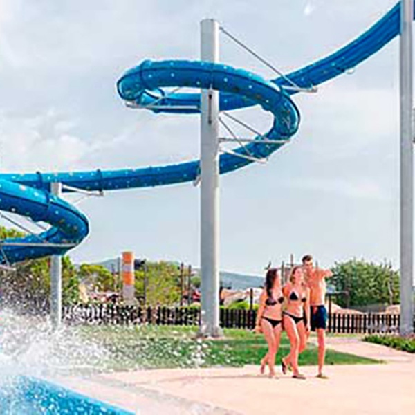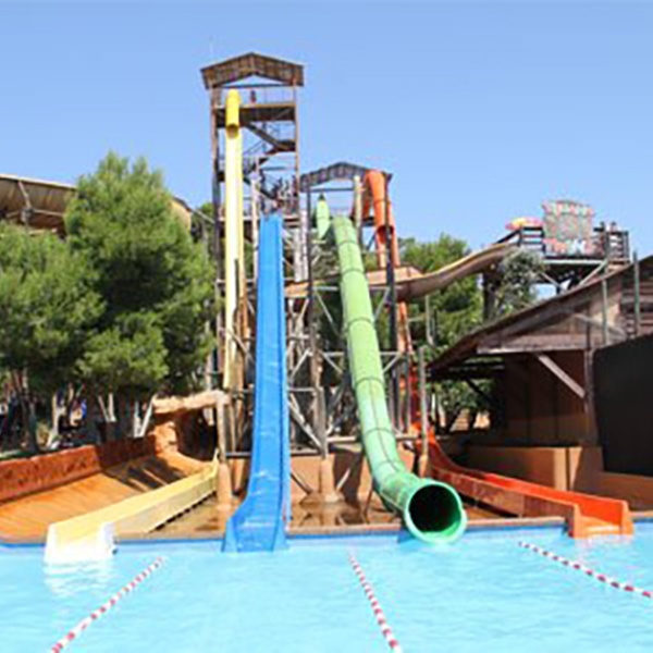 Parque con zona de atracciones para niños, toboganes para adultos, zona de eventos y espectáculos