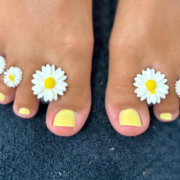 La pedicura incluye limado de la uña, pulido de cutículas y esmaltado semipermanente en color liso. No incluye cambio de forma, retirada de durezas, pediluvio (remojo) ni decoraciones.