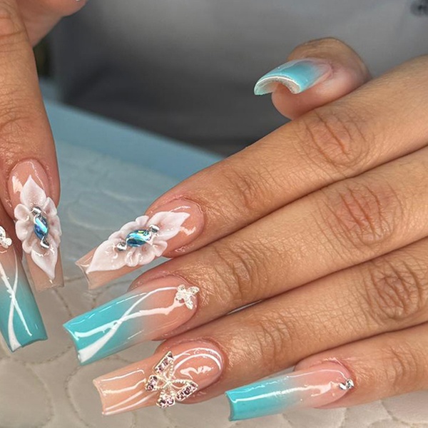 - Uñas con gel o acrílico talla S-M, esmaltado semipermanente y diseño en una uña