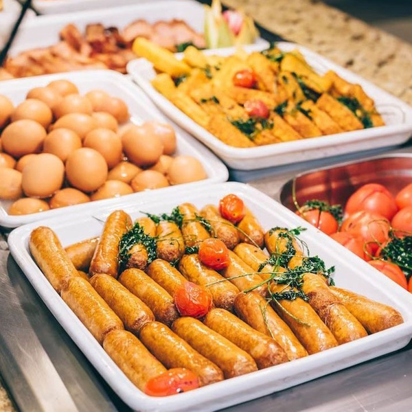 El almuerzo en Golden Buffet incluye platos como ensaladas, pescados, carnes con salsas irresistibles, sopas, pastas, guarniciones y todo lo que puedas imaginar para renovar la energía antes de volver a bañarte al sol. Además, cuentas con bebidas ilimitadas como cerveza, vino, refrescos, zumos y agua.