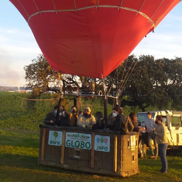 Paseo en globo con desayuno marismeño para 1, 2, 4, 6, 8 o 12 personas. La actividad incluye: