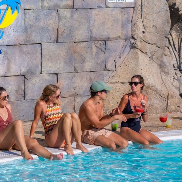 Disfruta de una piscina de agua dulce, una acogedora zona de playa para relajarte o tomar algo, y un entorno animado con música en directo. El espacio cuenta con vestuarios, toallas y la opción de reservar camas balinesas, tumbonas o acceder a exclusivas zonas VIP, así como actividades como futbolín, billar o dardos, entre otros.