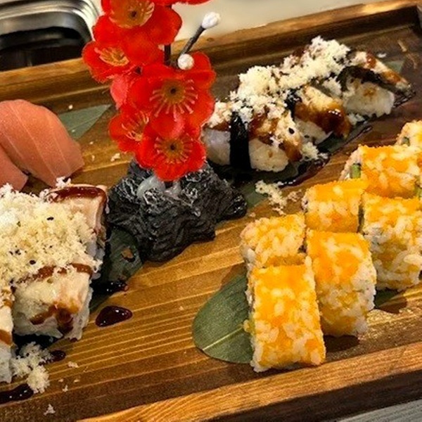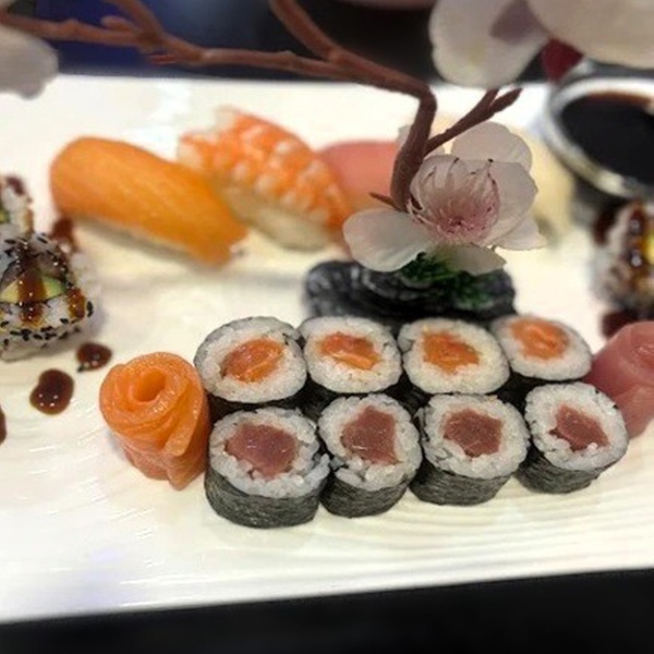 - Maki (8 unidades) : salmón, atún, langostino y tobikko, cangrejo y queso, pepino, pez mantequilla y pepino, aguacate, mango.