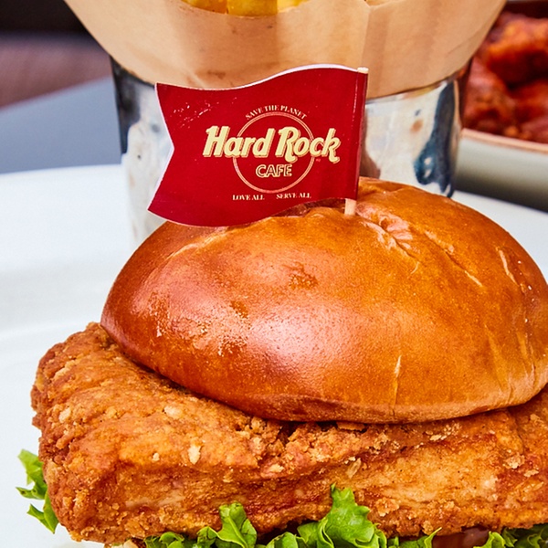 - Grilled Chicken Sandwich: pollo a la parrilla con queso Monterey Jack fundido, beicon ahumado, lechuga y tomate en rama, servido en un panecillo brioche con salsa de miel y mostaza.