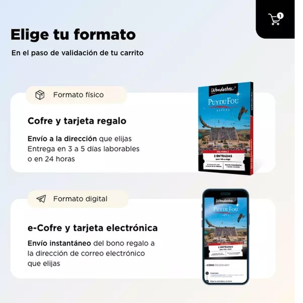 - Esta oferta no admite cancelaciones y no es reembolsable. El cofre puede cambiarse gratuitamente por todo el catálogo de Wonderbox Connect (consultar en línea).
