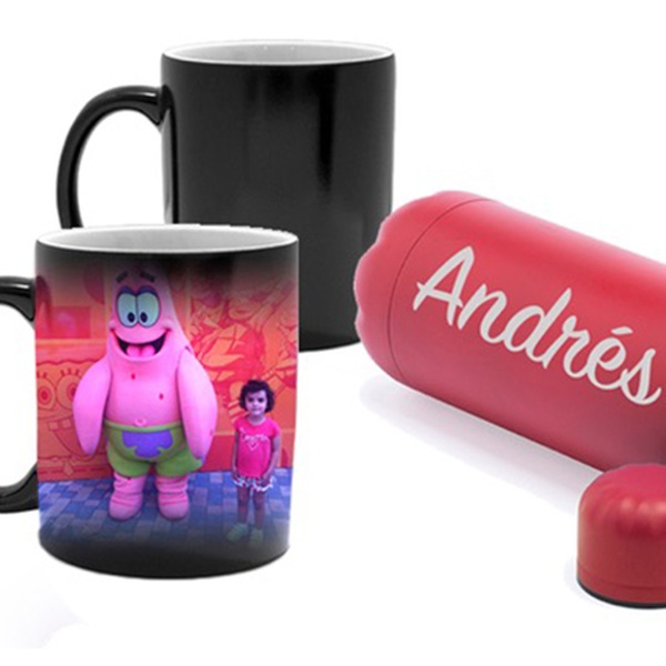 En la taza mágica, la imagen se muestra poco a poco medida que se introduce líquido caliente en ella