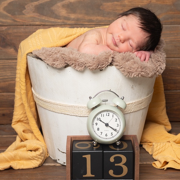 • Sesión de fotos en estudio de embarazo o recién nacido ''Girasol'' con 7 fotos editadas