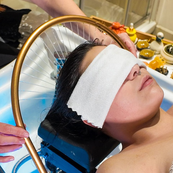 El ritual de head spa está disponible en tres opciones: una experiencia de 45 minutos con bebida caliente, una sesión de 60 minutos que incluye limpieza facial y bebida caliente, o una versión de 60 minutos con masaje corporal y bebida caliente.