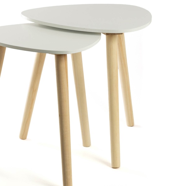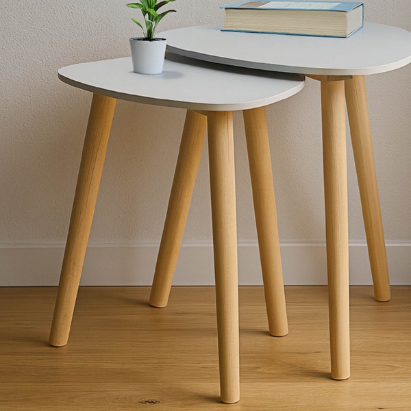 Groupon ofrece este juego de 2 mesas auxiliares de estilo nórdico en color blanco y madera, vendido por Il Gruppone SRL.