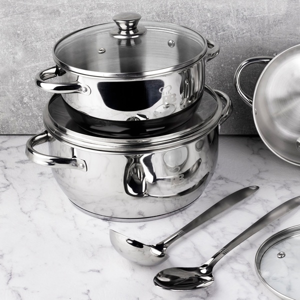 - Este set incluye 10 piezas entre ollas, sartenes, cazos y cucharas; herramientas que toda cocina necesita para preparar cualquier tipo de comida