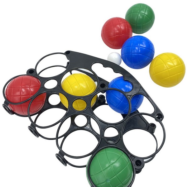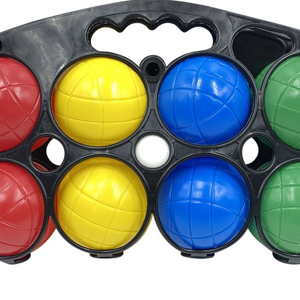 - El set está equipado con 8 pelotas de colores y 1 boliche, todo ello contenido en un práctico estuche ideal para llevar el set de vacaciones o a excursiones al aire libre