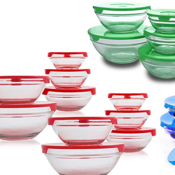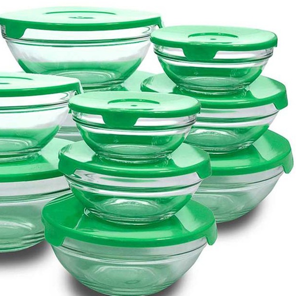 Recipientes de diferentes tamaños, hechos de vidrio, retienen la mayor parte de las propiedades de los alimentos y el sabor de los platos