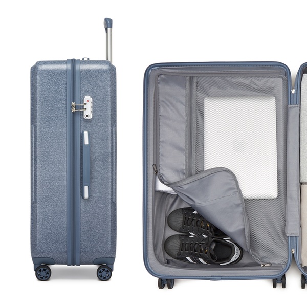 - Fabricada con una mezcla de ABS+PC de alta calidad, esta maleta ofrece protección confiable para tus pertenencias, asegurando durabilidad y ligereza para un manejo fácil.
