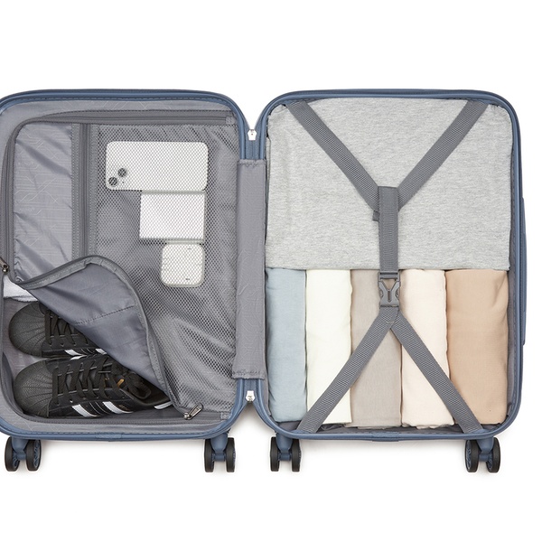 - El asa telescópica es totalmente ajustable a tu altura preferida, mientras que las asas superior y lateral permiten levantar y maniobrar la maleta con facilidad.